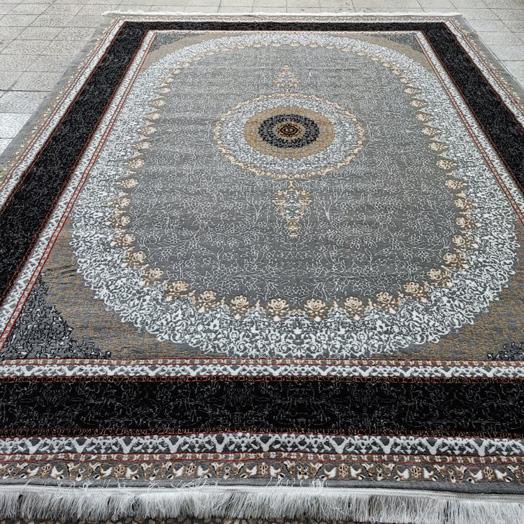 فرش 500 شانه ساحل طوسی حاشیه مشکی(+ارسال رایگان)