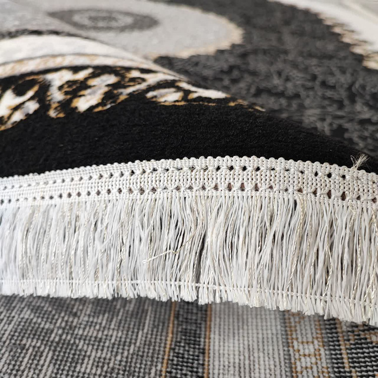 -ریشههای این فرش نیز از جنس خود فرش بافته شده و با ظرافت خاصی دوخته شدهاند تا جلوهای زیبا و ماندگار به آن ببخشند. علاوه بر این، چهار گوشهی پشت فرش چرمکوبی شده تا از تاخوردگی یا آسیب دیدن در مرور زمان جلوگیری شود.